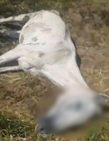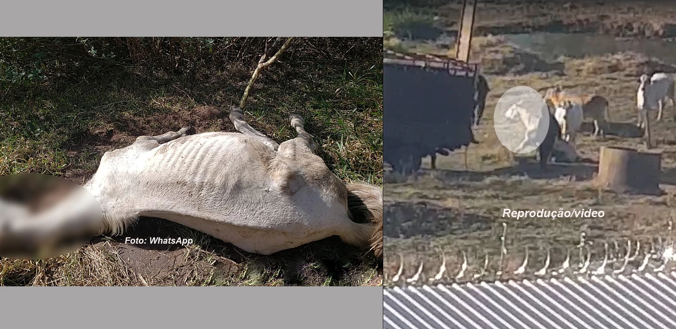 Bastante debilitada, a égua ainda tenta se levantar, mas sem receber nenhum tipo de atendimento. Pelas imagens é possível ver alguns bovinos se aproximando como se tentassem ajudá-la.