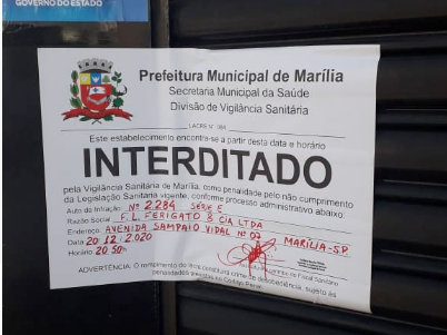 A Prefeitura de Marília através da Vigilância Sanitária de Marília com apoio da Fiscalização de Posturas autuou e interditou na noite de ontem, dia 20, um estabelecimento comercial do segmento de bares e restaurantes na Avenida Sampaio Vidal no centro de Marília.
