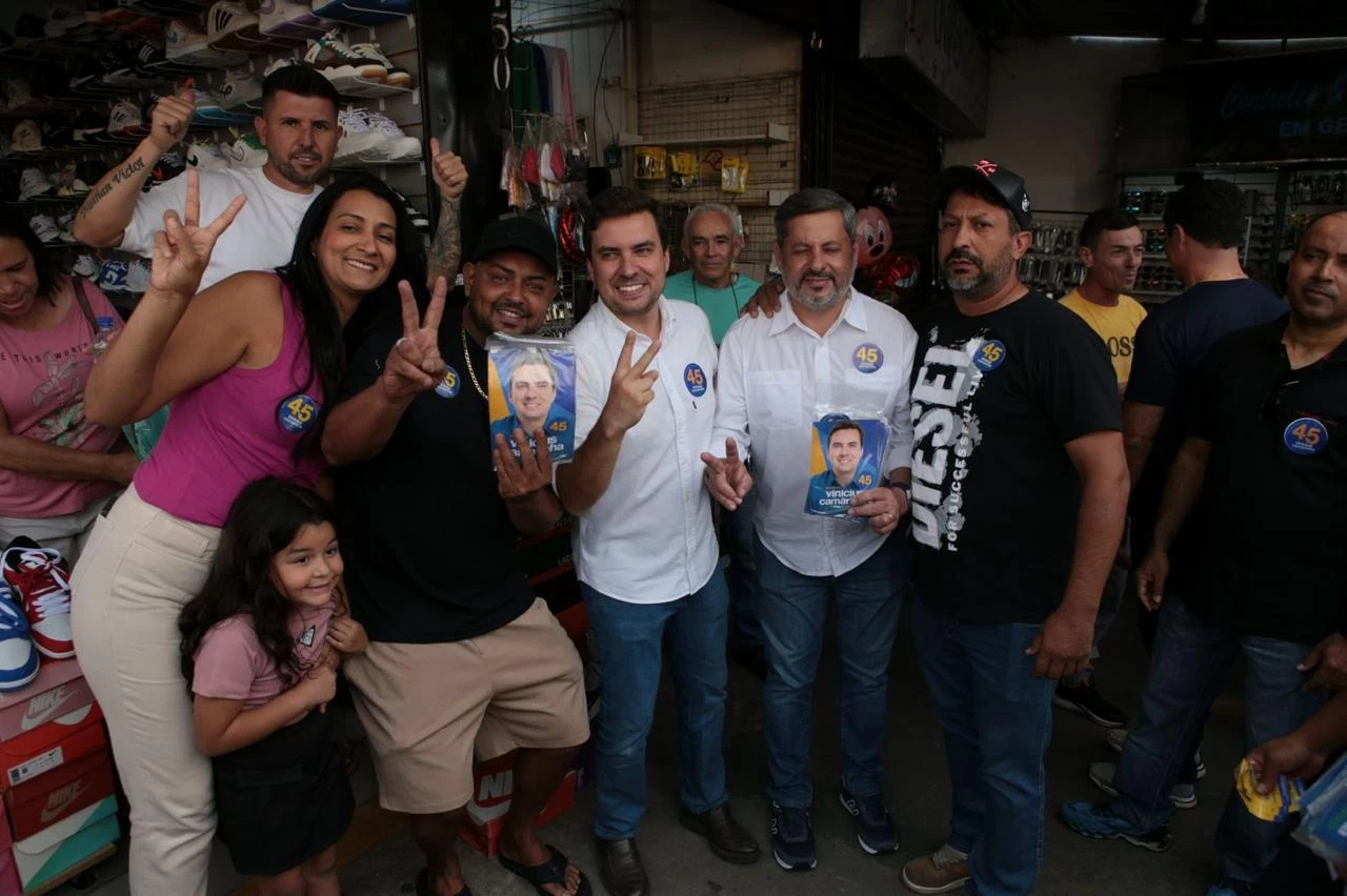 Acompanhado do vice Rogerinho e apoiadores, Vinicius fez uma caminhada pelas principais ruas do Centro da cidade e sentiu o clamor popular. O candidato, que é líder nas duas pesquisas divulgadas até o momento, segue confiante e determinado para devolver para Marília um governo digno e justo.