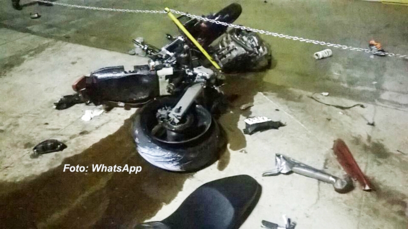 Ao cair da moto, a vítima teria percorrido vários metros, parando ao bater em um poste. Ele morreu na hora. A perícia informou ainda que o capacete da vítima foi arremessado à vários metros de distância, causamendo um gravíssimo trauma no crânio.