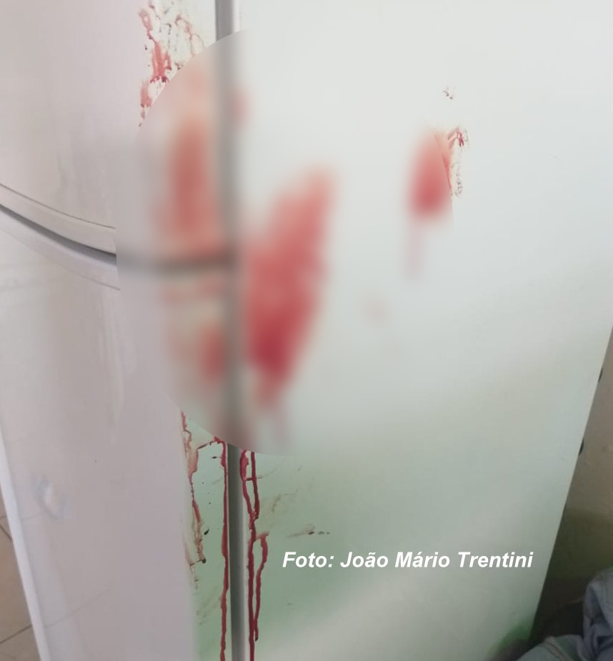 Os PMs foram ao local e encontraram a vítima caída no corredor da casa toda ensanguentada e com duas perfurações no pescoço, além de outros ferimentos pelo corpo.