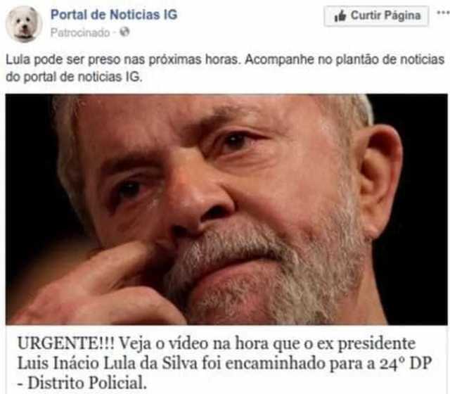 Cibercriminosos estão aproveitando a repercussão do julgamento do ex-presidente Luís Inácio Lula da Silva para espalhar um vírus. O conteúdo malicioso está sendo difundido no Facebook, por meio de um post patrocinado, com um suposto vídeo do petista sendo preso.