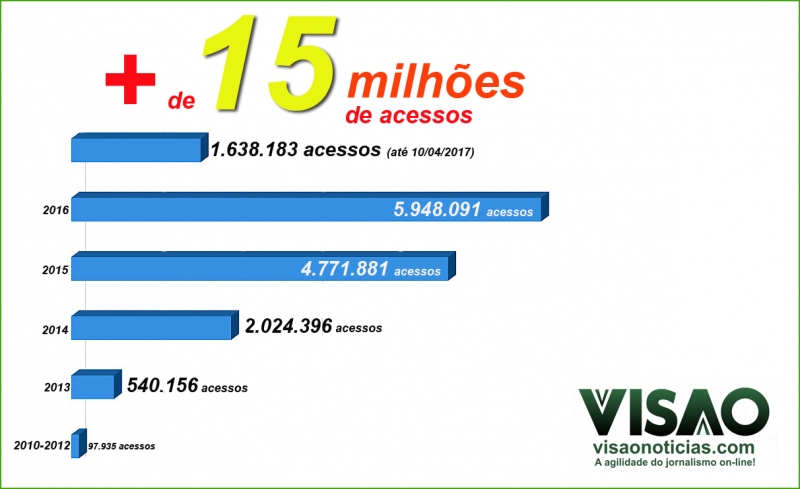 O Visão Notícias.com atingiu nesta semana a marca histórica de 15 milhões de acessos (desde a sua implantação). É consolidado
