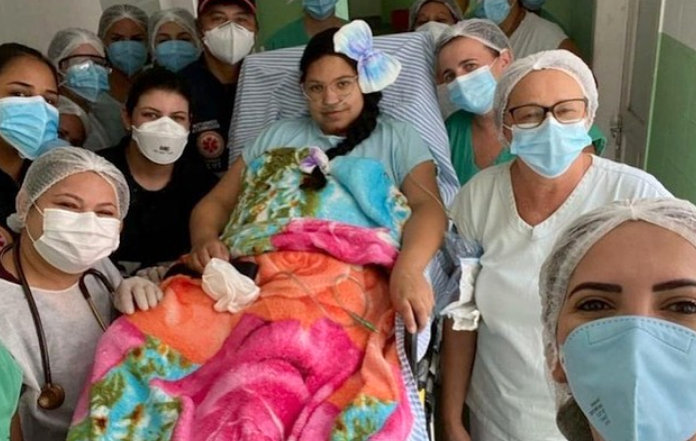A dona de casa Rafaela dos Santos foi mãe sem saber. Ela deu à luz a primeira filha enquanto estava intubada durante tratamento contra a Covid-19, em Campina Grande/MS.