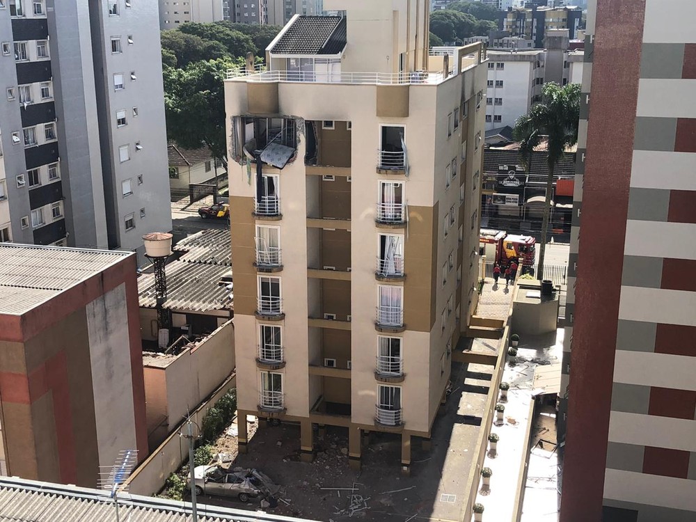 Explosão: Segundo a Polícia Militar, a explosão foi seguida de um incêndio. O apartamento fica no último andar do prédio e no momento do ocorrido, era feita a impermeabilização de um sofá dentro do imóvel.