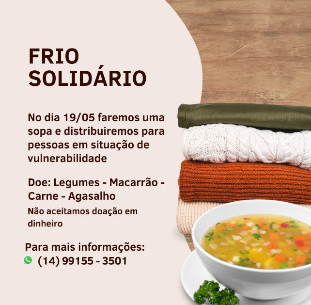 Quem quiser participar ou doar alimentos, basta ligar para: (14) 99155-3501