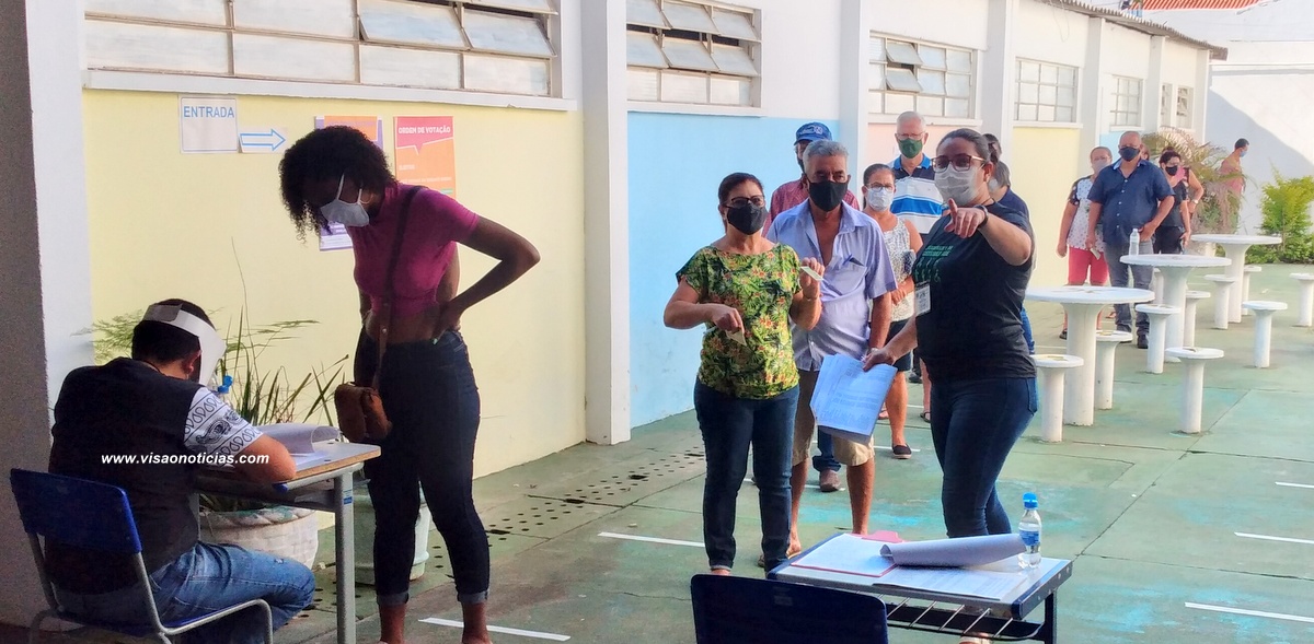 Candidatos espalham milhares de "santinhos" em locais de votação. Horário até 10h prioriza grupos de risco ao novo coronavírus.