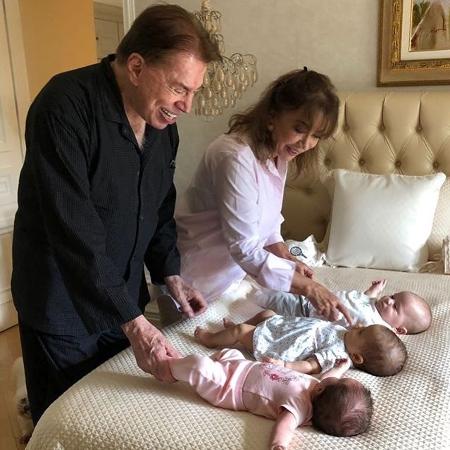 Silvio Santos mostrou que é um avô pra lá de coruja. Patrícia Abravanel, filha de Silvio, postou um clique do pai e da mãe, Íris Abravanel, brincando com seus três netos mais novos.