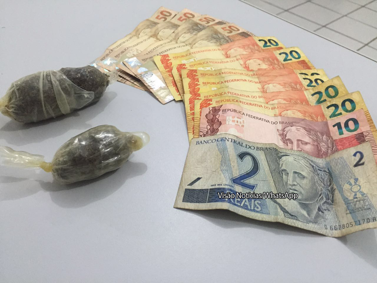 Ao solicitarem uma busca minusciosa na bolsa da mulher, ela se revoltou contra os policiais e tentou resistir à averiguação, momento em que foram encontradas duas porções de maconha envolvidas em preservativos, além de R$ 332 provenientes da venda da droga.