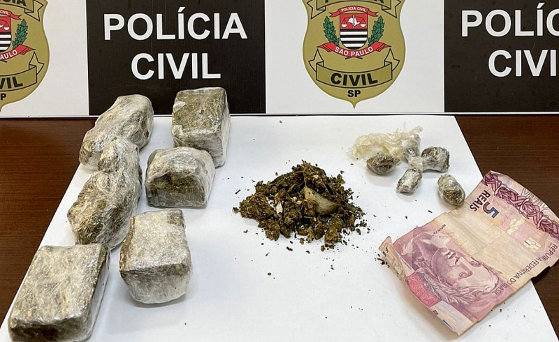 No local, a DISE apreendeu seis tabletes de maconha dentro da geladeira, cinco porções no sofá e mais uma porção à granel no quarto do morador.