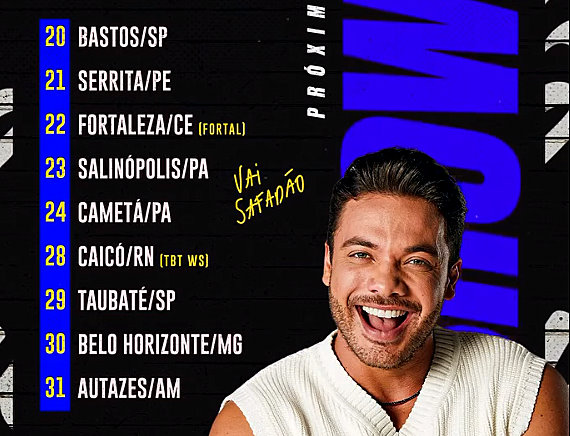 Porém, no mesmo dia dessa entrevista Wesley Safadão anunciou sua agenda de shows que prevê a retomada por Bastos, no dia 20 (quarta-feira) para alegria dos fãs de toda região.