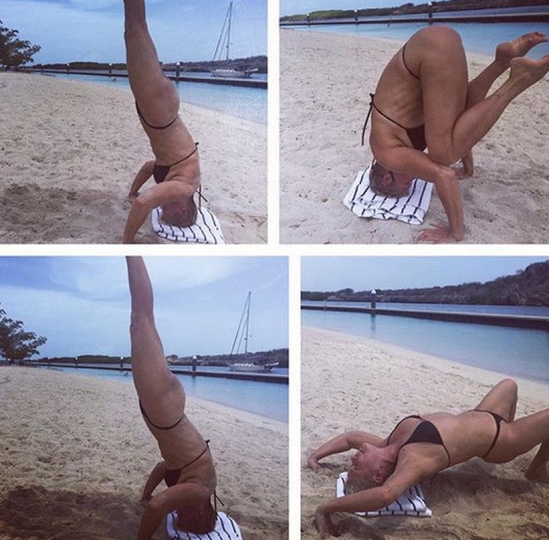 A rainha dos baixinhos tinha postado uma foto onde aparece de biquíni enquanto tenta plantar bananeira, mas deve ter se arrependido. Em uma outra publicação, ela pediu desculpas aos seguidores.